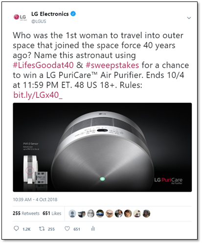 In celebration of the brand’s 40th anniversary in the U.S., LG launched a 40-day/40-product sweepstakes garnering over 2.6M organic impressions and over 170K engagements, the best of the year at nearly triple typical KPIs.