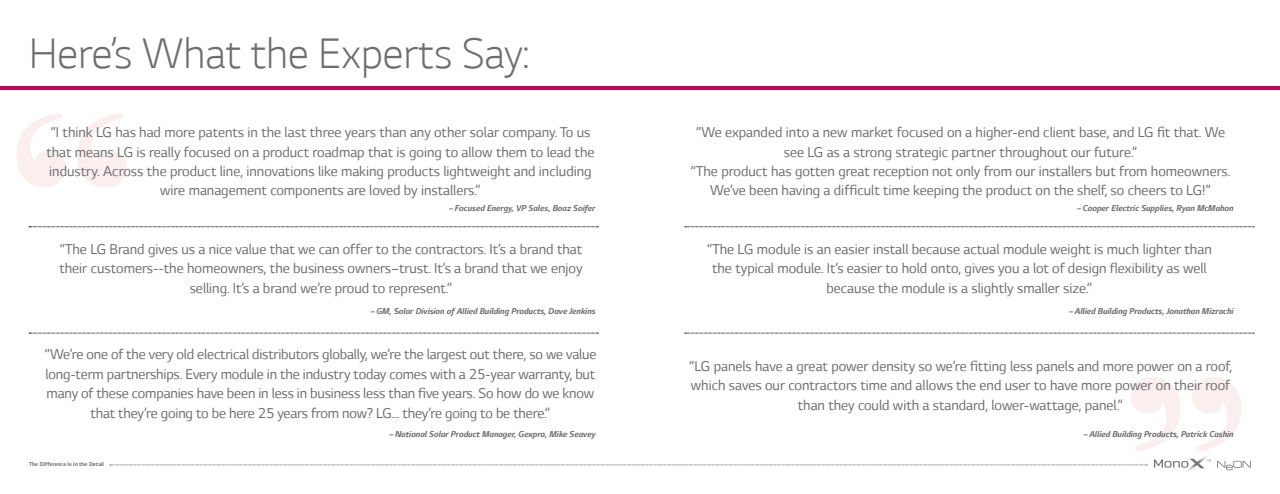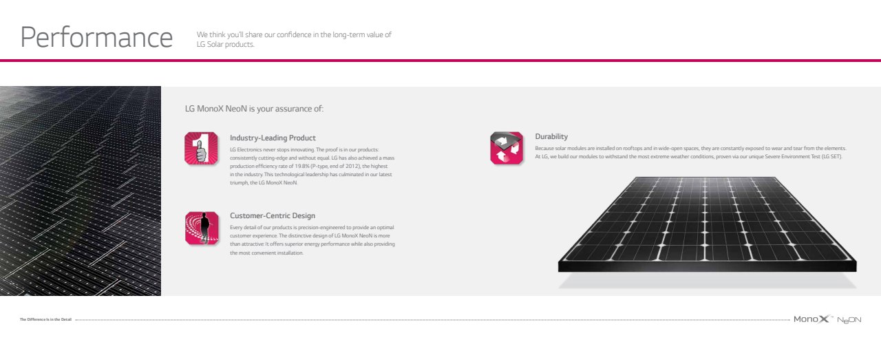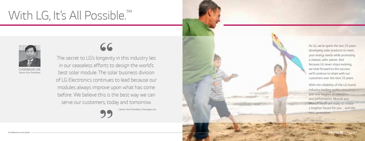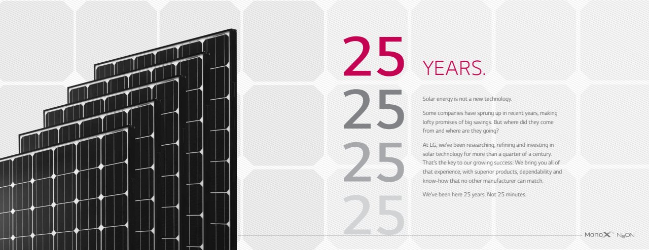 Working largely with existing assets, we were tasked with creating a new premium print brochure touting LG’s legacy, credibility and superiority in the rapidly changing solar market.